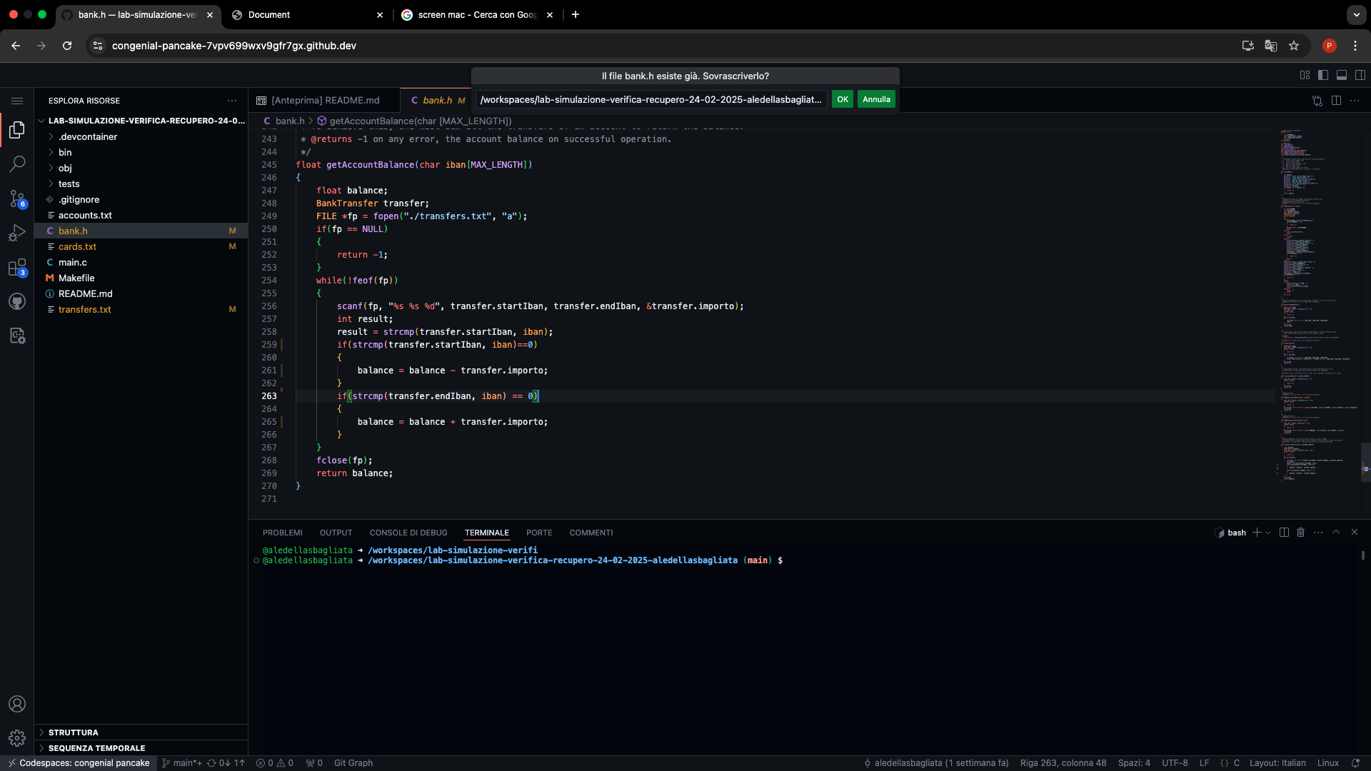 Bank è un'esercitazione svolta con il professore Sanino in C che si basa su tre diversi file per il fine di implementare diverse operazioni/statistiche bancarie.