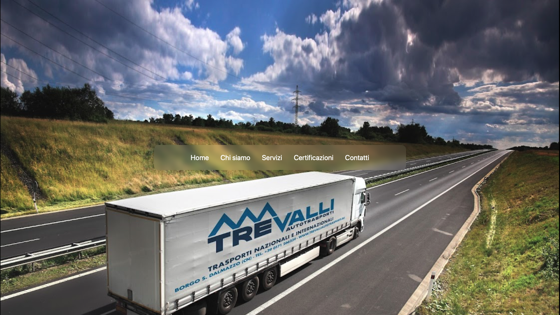 Questo è un mio progetto individuale, ancora work in progress perche iniziato pochissimi giorni fa. Consiste nella creazione di un sito vetrina per l'azienda Autotrasporti trevalli nel quale sto mettendo in pratica tutto ciò che ho imparato durante le lezioni e ciò che ho approfondito da solo nel mio tempo libero.