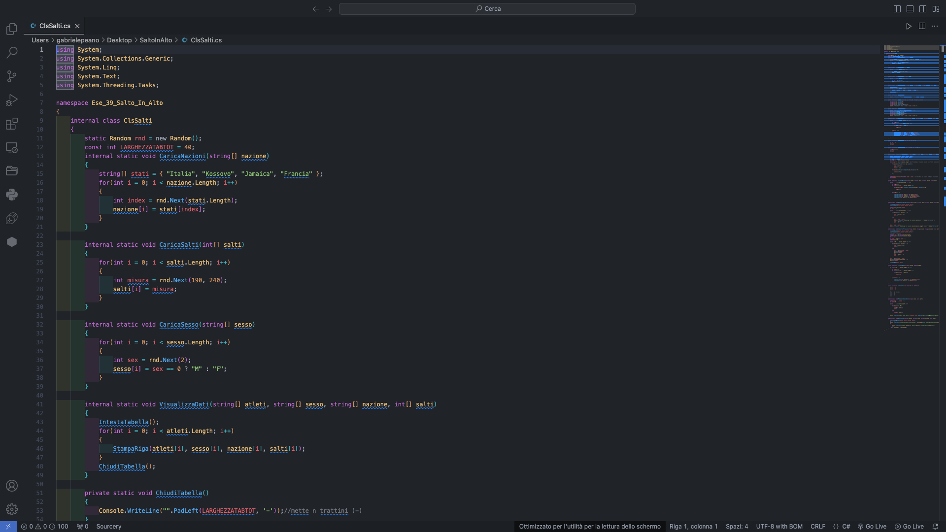 Questo è un progetto fatto in classe con il professore Belliardo ed è al momento il programma più lungo che abbiamo affrontato. E' un programma scritto in c# che calcola alcune statistiche riguardanti atleti di salti in alto